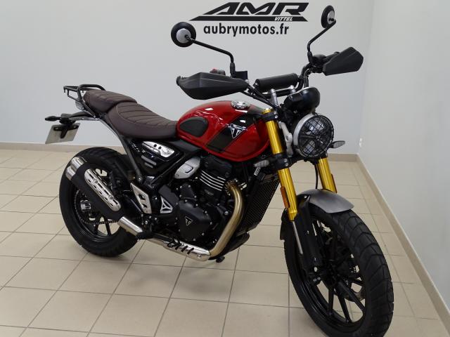 TRIUMPH SCRAMBLER 400 X ETAT NEUF - MOTO PERMIS A2 - GARANTIE CONSTRUCTEUR - COLORIS CARNIVAL RED - VENDUE NEUVE AMR VITTEL - ENTRETIEN 1000 KMS FAIT AMR VITTEL - Pare.mains - Grille de phare - Porte paquets - Grille radiateur - Avec son agilité, ses performances de référence et ses finitions premium, le Scrambler 400 X est une machine magique et performante - AMR.31314.5782.1357.107.